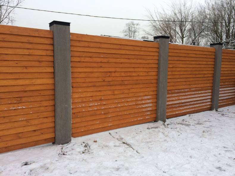 Комбинированный забор с металлическими стойками, как правило, получается легким.