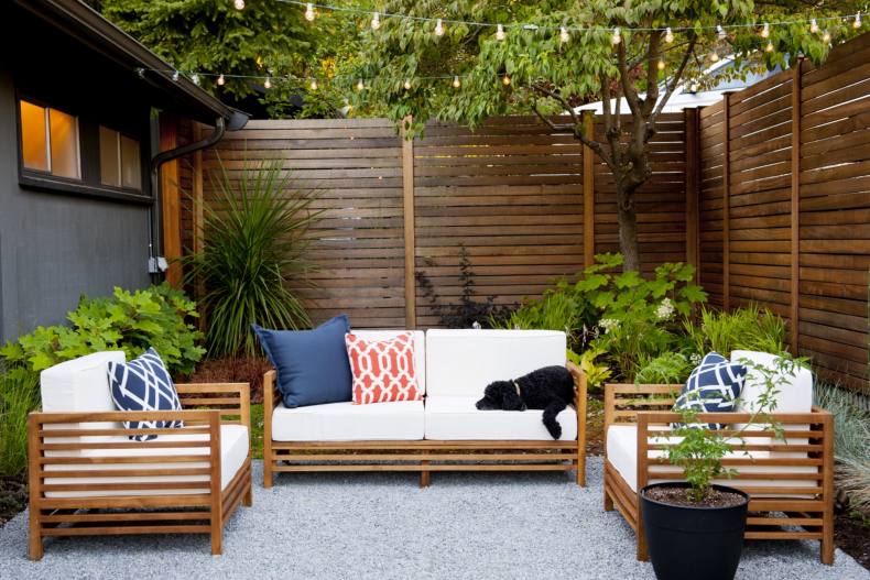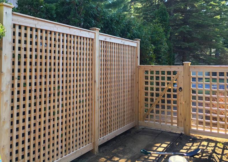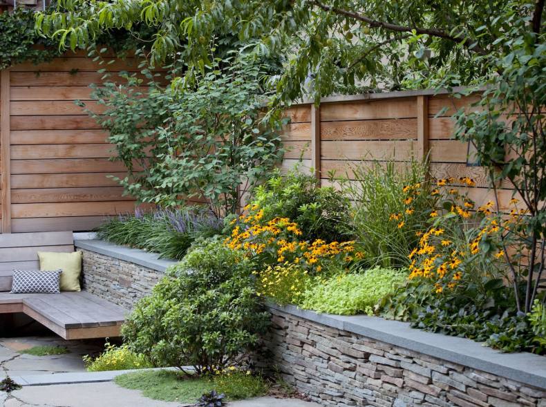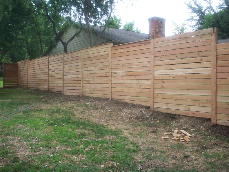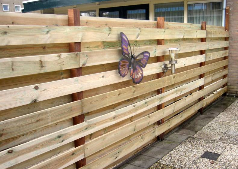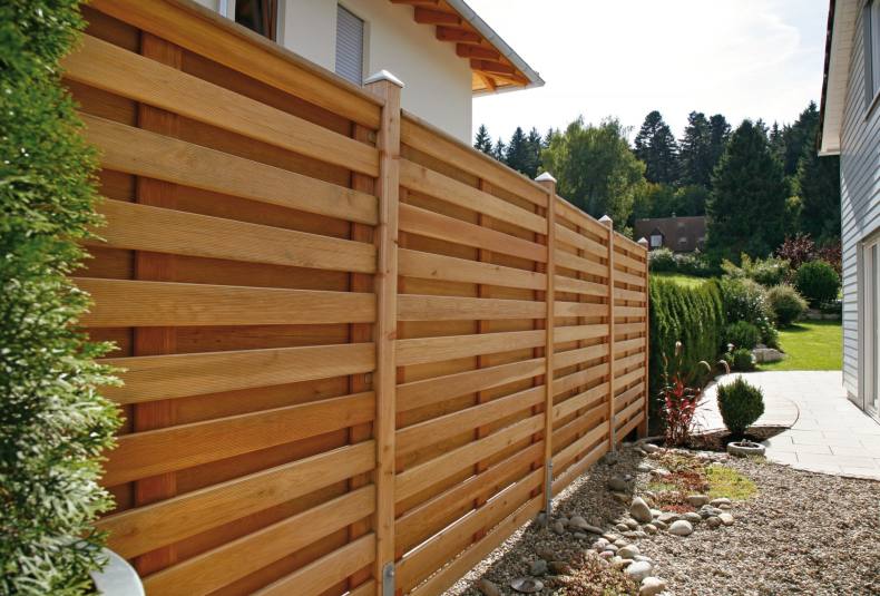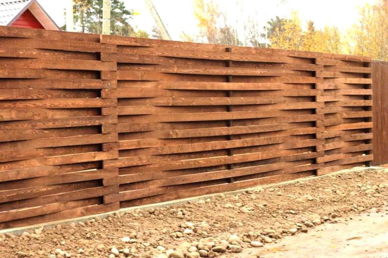 Плотно пригнанные доски закроют всю территорию, а различные по размеру промежутки позволят обеспечить требуемую открытость участка.