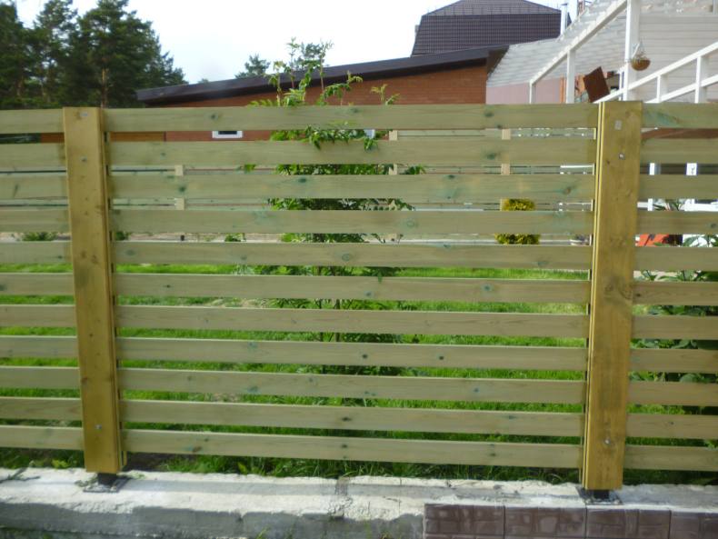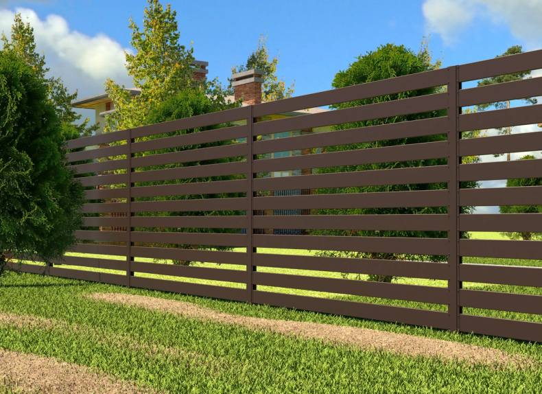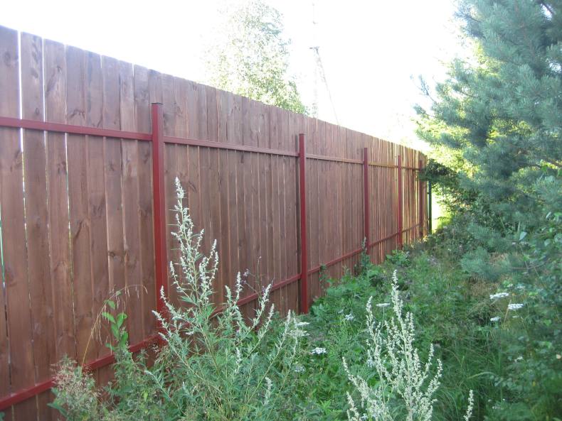 - При этом такой забор неплохо справляется с защитой участка от пыли (вся уличная грязь задерживается плашками)