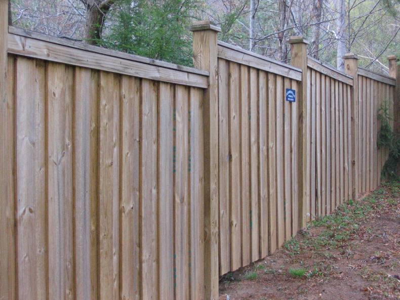 - Такой вариант представляет собой горизонтально или вертикально установленные полотна, созданными из плотно подогнанных досок. Под него придется подготовить довольно устойчивый фундамент или вкопать исполинские столбы.