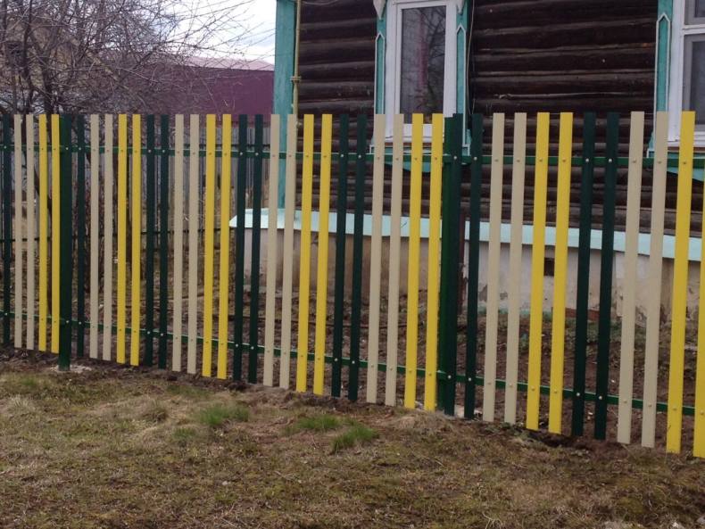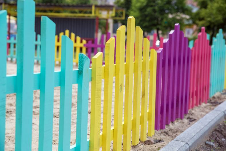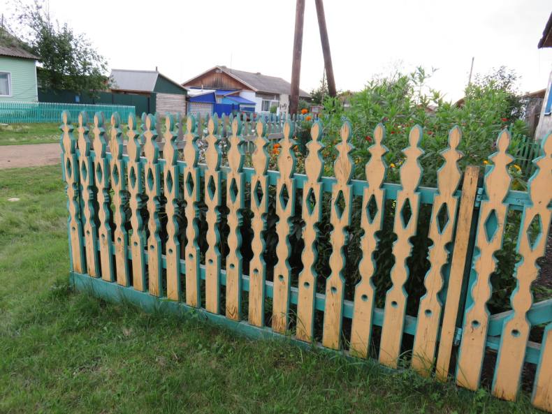 Очень часто штакетник раскрашивают в разные цвета или вырезают на досках необычные узоры.