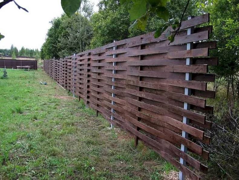 - Но и сегодня такой забор встречается довольно редко: переплетающиеся ромбы требуют довольно специфических навыков и терпения, так что чаще всего такой вариант используют в сочетании с глухими секциями.