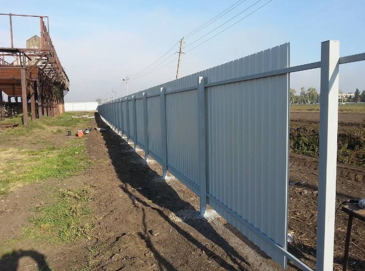 - Металл. Обычно это трубы из оцинкованной или черной стали. Первый вариант предпочтительнее, поскольку защищен от коррозии. Служит оцинковка в два-три раза дольше черной стали. В любом случае перед монтажом нижнюю часть опоры покрывают гидроизоляцией. Металл — универсальное решение. Оно подходит для любых ограждений: из рабицы, профнастила, т.д.