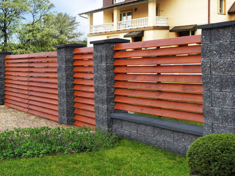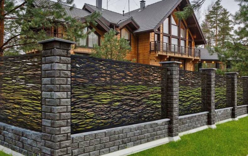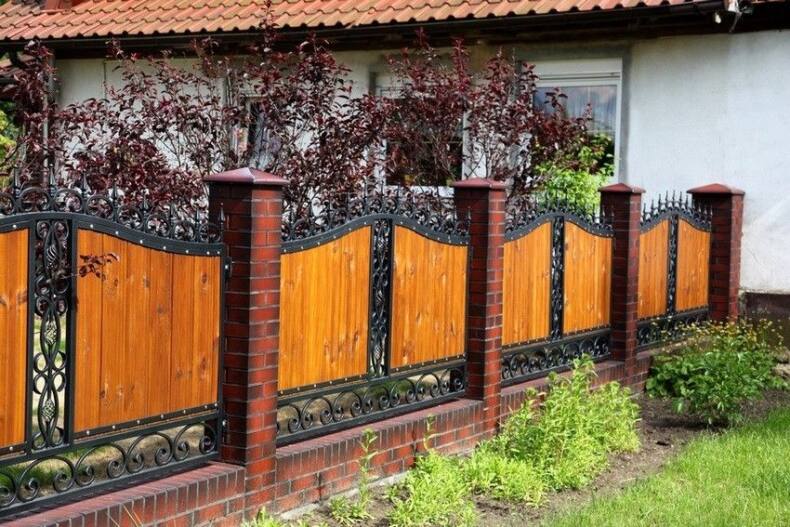 Если дом построен из бруса или любого другого вида древесины, тогда и ограда должна быть деревянной. Для каменного дома верным решением станет комбинированный вид забора, который лучше сделать из таких материалов, как кирпич, бетон и кованые элементы.