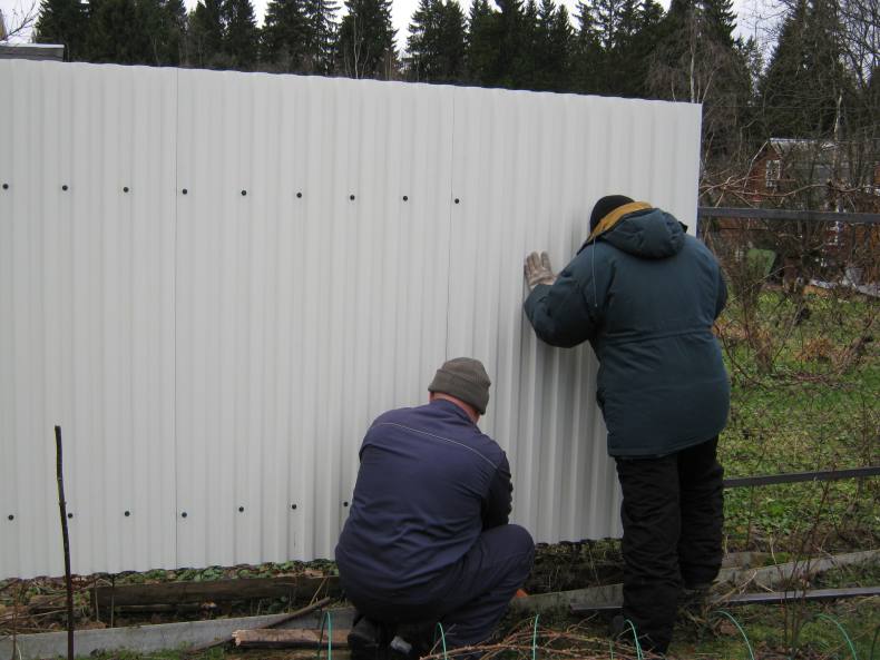 Использование тонкого профнастила также не стоит рассматривать в качестве оптимального варианта, так как в данном случае может возникнуть так называемый «эффект паруса» (под воздействием ветра листы профнастила начнут прогибаться).