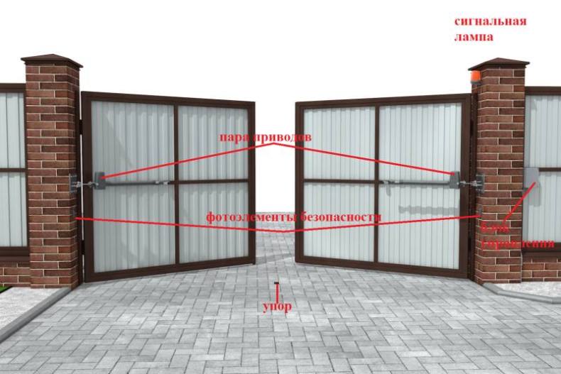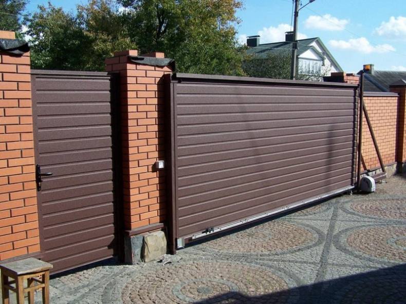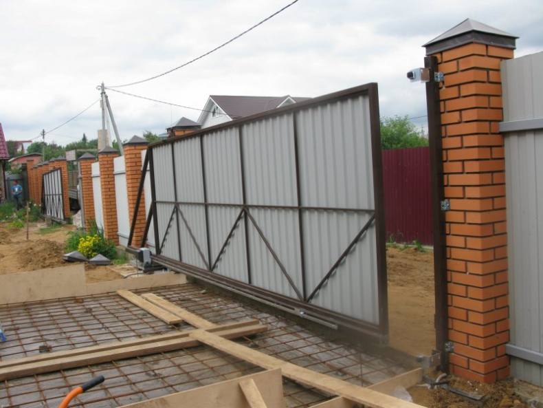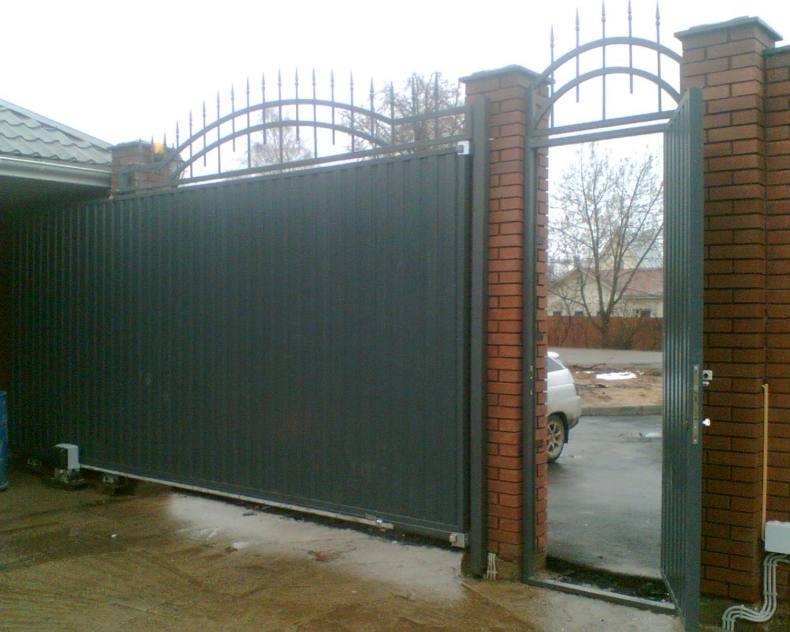Также могут быть разными стойки-опоры, их отливают из металла или выкладывают из кирпича – зависит от дизайна всей ограды. Способ открытия варьируется от распашного до откатного, есть автоматические варианты открывания.
