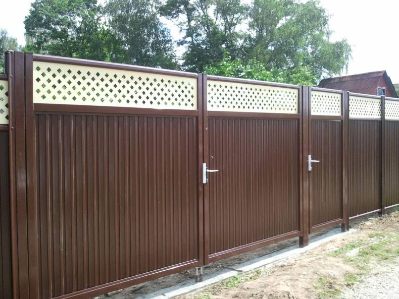 Даже самая простая калиточка из профлиста дает простор для творчества. Не имея большого опыта, можно самостоятельно изготовить простую по своей конструкции калитку или забор (например, в форме прямоугольника на опорах из металла). Далее будут рассмотрены принципы создания и монтажа такой калитки в качестве примера.