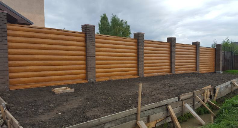 Наиболее подходящим фундаментом для строительства забора из бруса считается — мелкий ленточный тип. Данный тип фундамента требует минимального количества ресурсов и достаточно просто изготавливается.