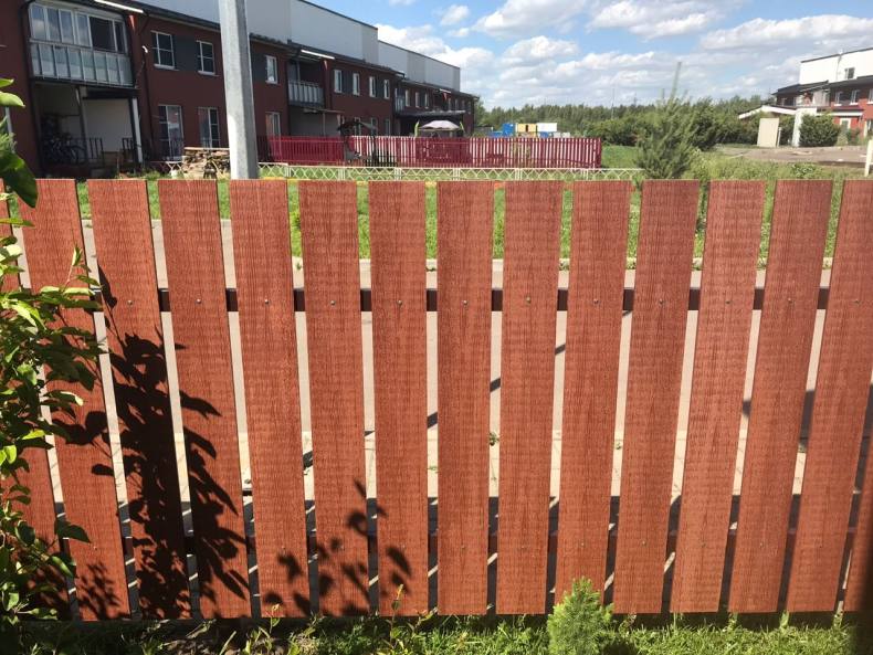 Минусом может стать и невозможность последующей перекраски забора: цветовые пигменты вводятся в материал на начальном этапе, а новый слой красок не удержится на поверхности.