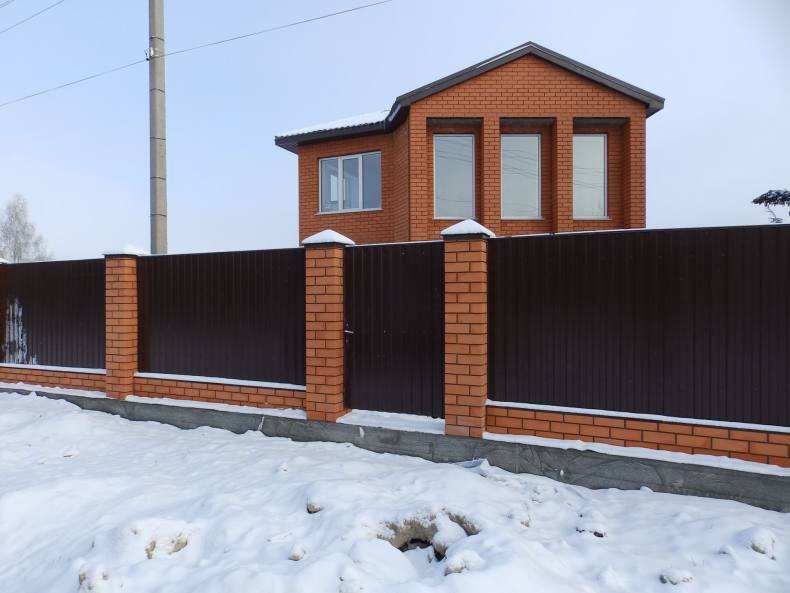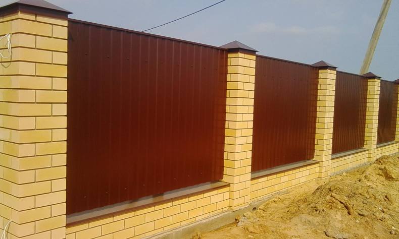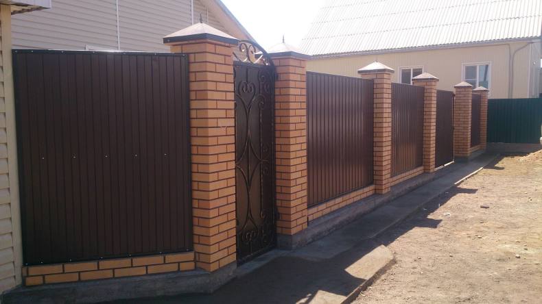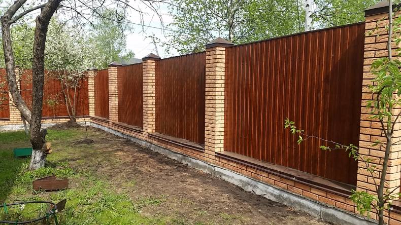 Комбинированный забор из профлиста и кирпича