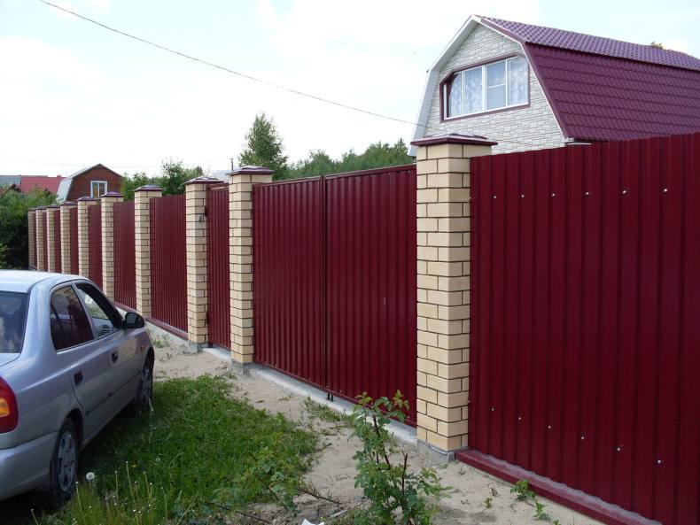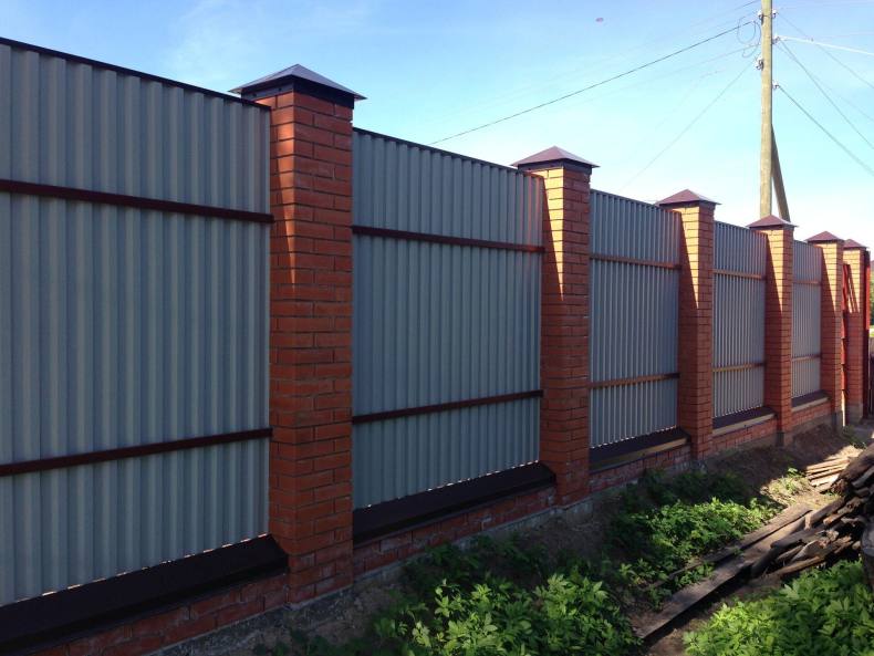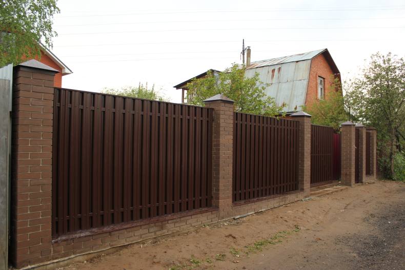Особенности возведения забора из профлиста и кирпича