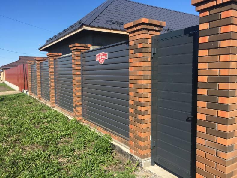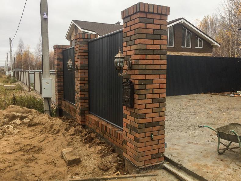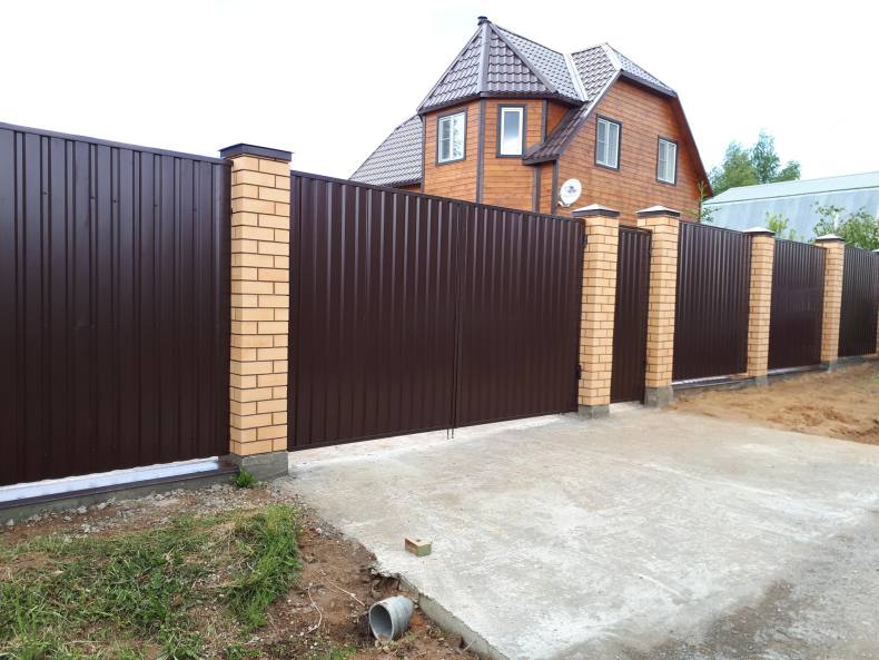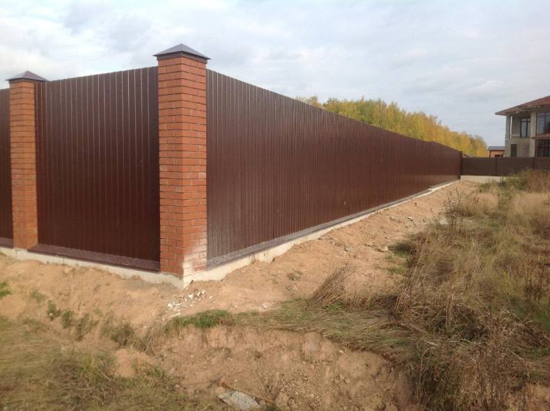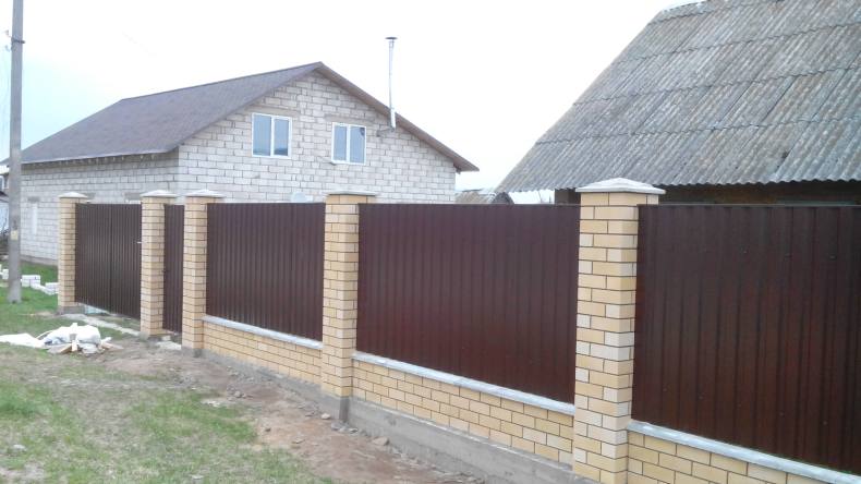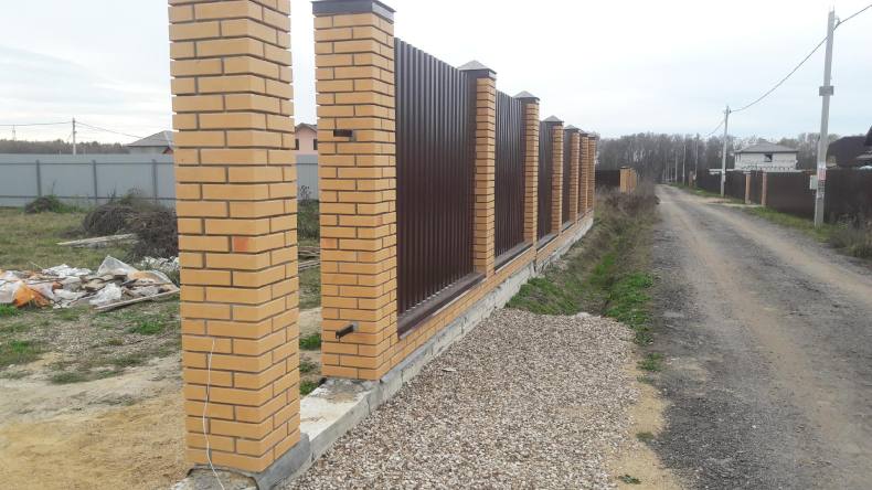 Забор из кирпича и профнастила: преимущества и недостатки, расчет материала, уход и пошаговая технология строительства, 138 фото