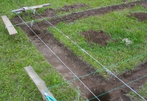 Убрать растительность и выровнять земляную поверхность. Сделать разметку для угловых столбов, по ним определить расположение остальных.
