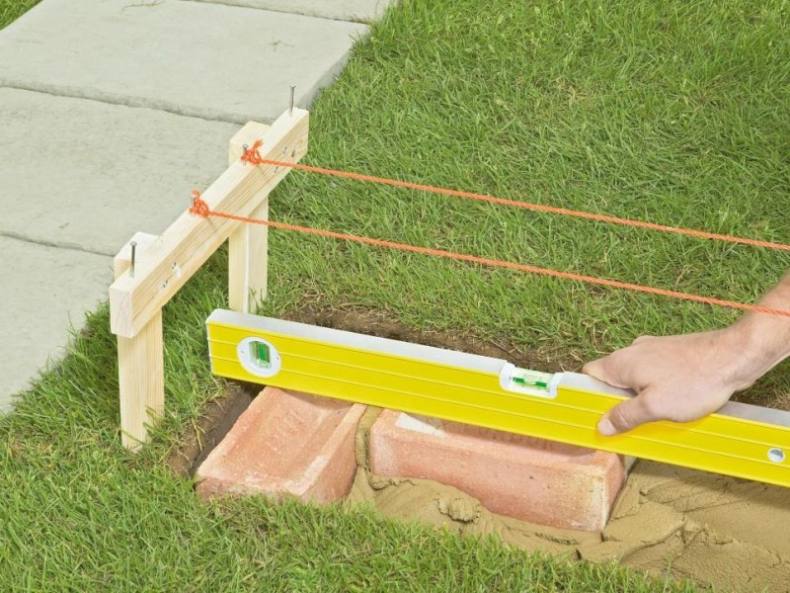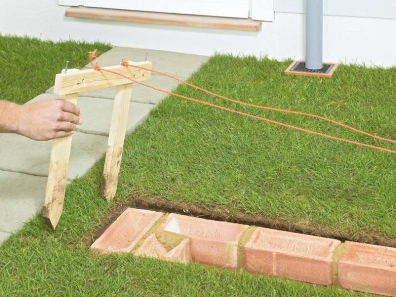 Сначала кладку начинают с крайних кирпичей. Между ними необходимо натянуть шпагат, чтобы лучше ориентироваться.