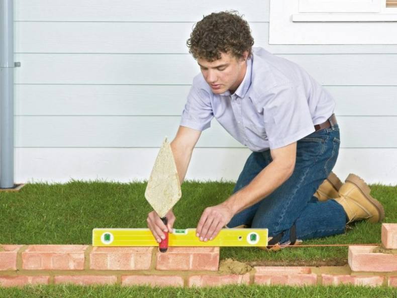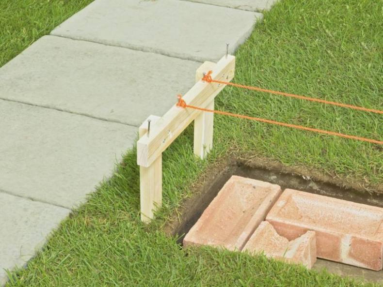 Потребуются лопата, кувалда, лом, а также болгарка, чтобы разрезать кирпичи, кирка, мастерок и вёдра, чтобы носить раствор из цемента.