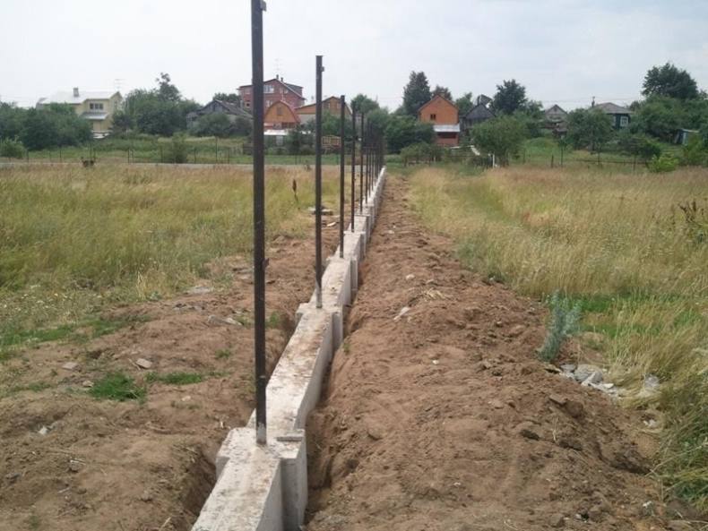 Также вдоль всего ограждения можно соорудить наклонную площадку из бетона, которая не будет позволять влаге скапливаться.