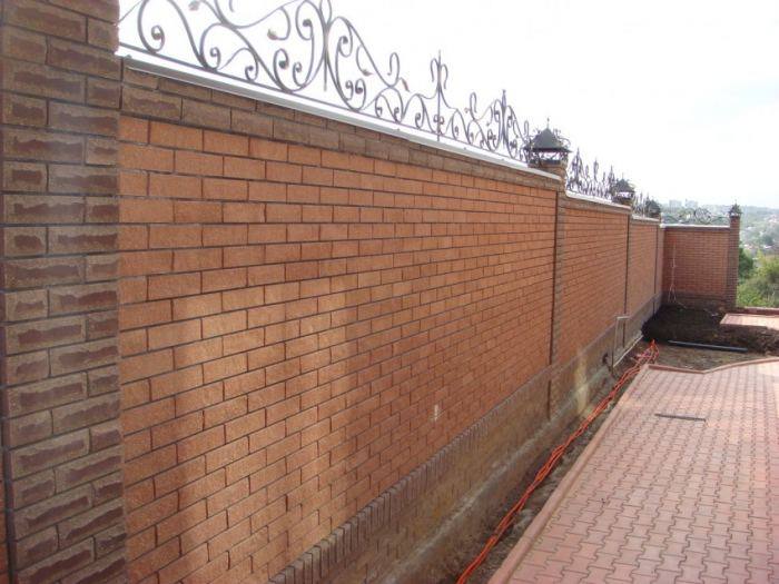 Как уже было отмечено выше, если её не сделать, то срок эксплуатации забора значительно уменьшится. Дождевая вода может просачиваться через кирпич и разрушать всю конструкцию изнутри.
