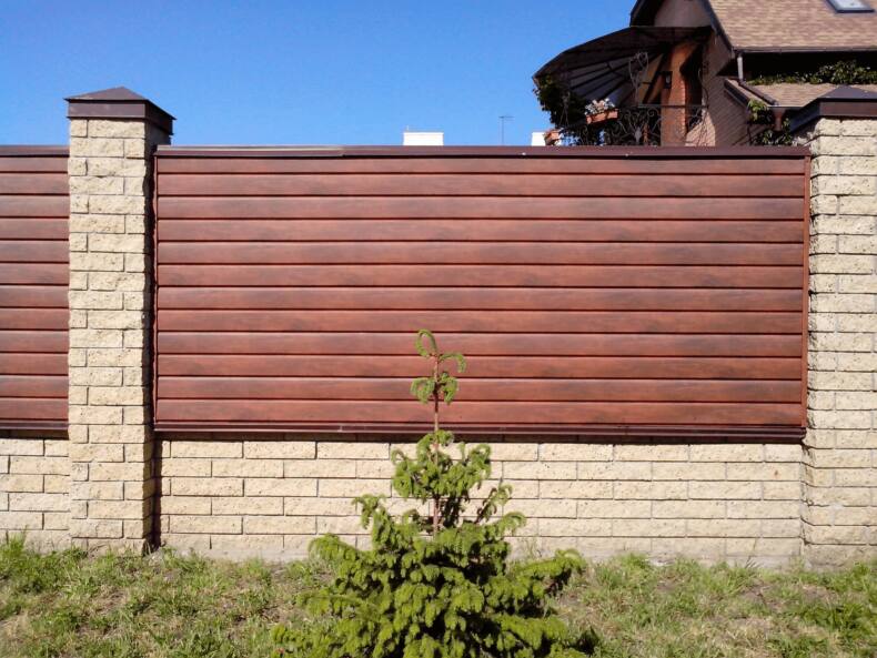 Ограждения такого типа особого ухода не требуют. Если забор сделан из металлического сайдинга, то необходимо следить за отсутствием царапин на его поверхности — любая, даже самая маленькая, даст толчок развитию окисления.