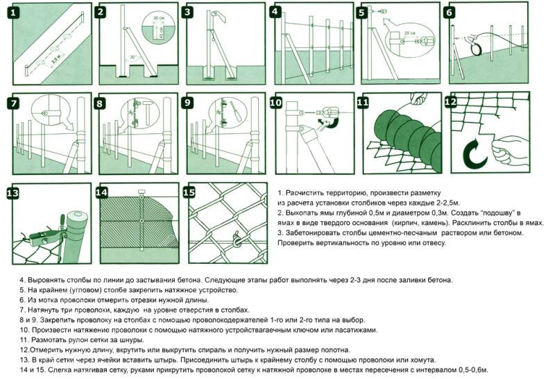Монтаж сетки рабицы (пошагово)