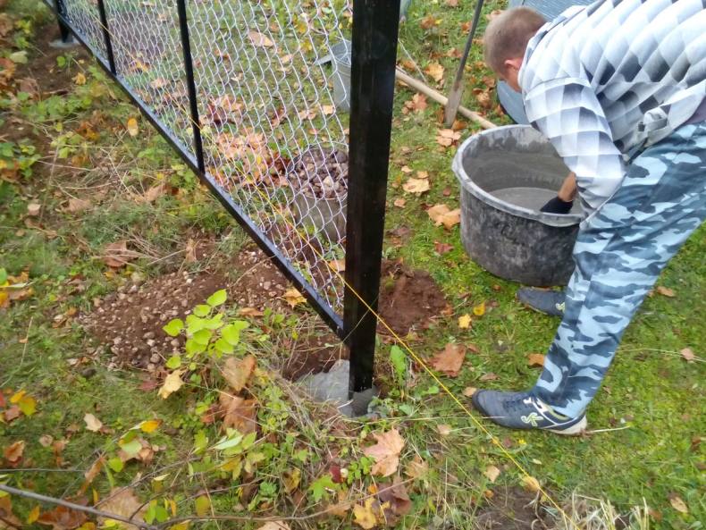- Надземная часть столба должна быть на 10-15 см выше над уровнем сетки.