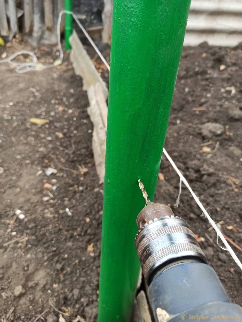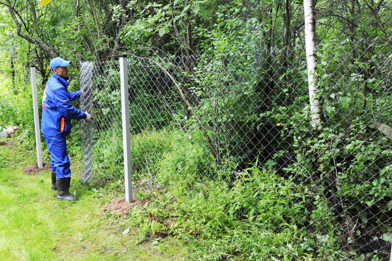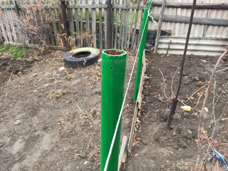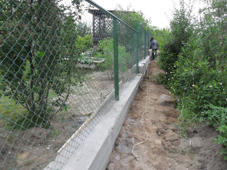 - Если забор натяжной, то следует заранее подготовить бетонный фундамент под всю конструкцию. В него также понадобится установить опорные столбы из металла. Важно внимательно работать с боковыми местами, где находятся дополнительные прикрепляющие механизмы. Все струны либо прожилины необходимо прикрепить к крючкам;