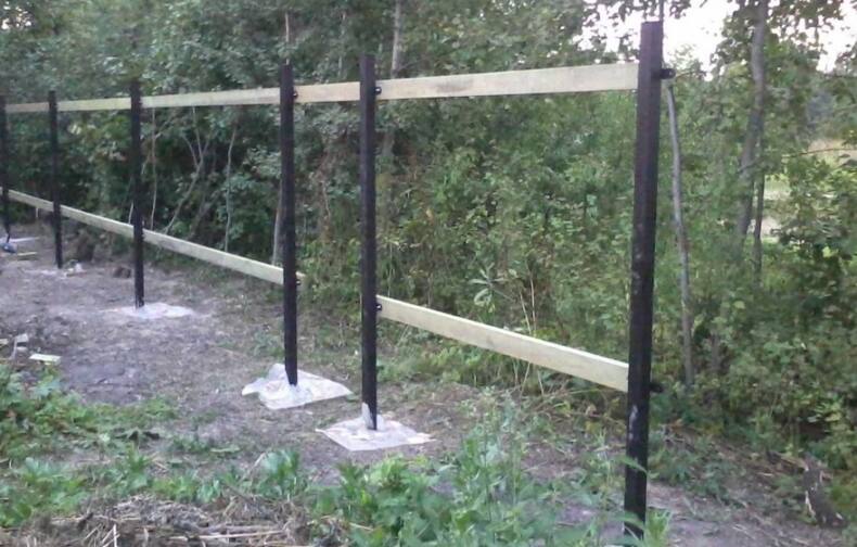 Также понадобятся защитные составы для монолита и столбов. В частности, дерево пропитывается антисептиком, металл — антикоррозионным составом покрывается. Погружаемая в грунт, часть ограждения отгораживается от земли рубероидом или иным гидроизоляционным полотном.