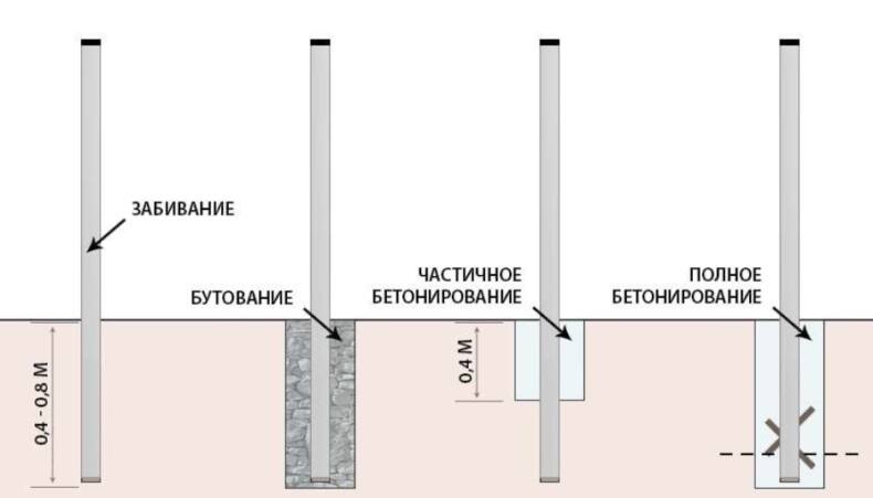 В случае с шифером рекомендуется погружать опоры на глубину 90–150 см. Так будет обеспечена минимальная вероятность отклонения столба под нагрузкой обшивки и сильного ветра.