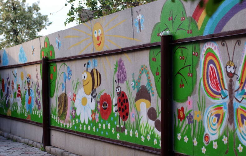 Привлекательность забора на даче или в деревне не всегда главная составляющая. Однако, даже выбирая неокрашенные серые листы шифера, можно создать нечто оригинальное. Ведь здесь организуется целое полотно — площадка для реализации фантазий с помощью красок.