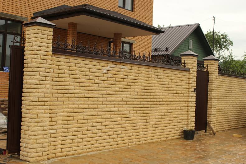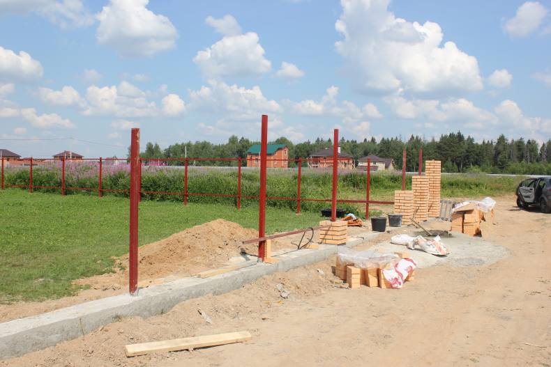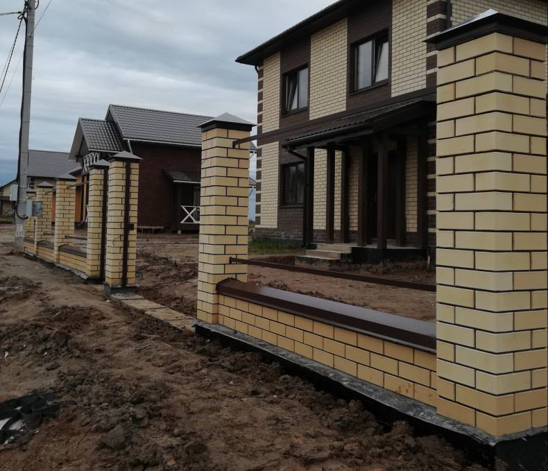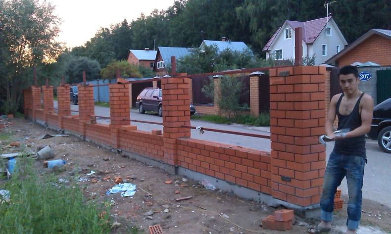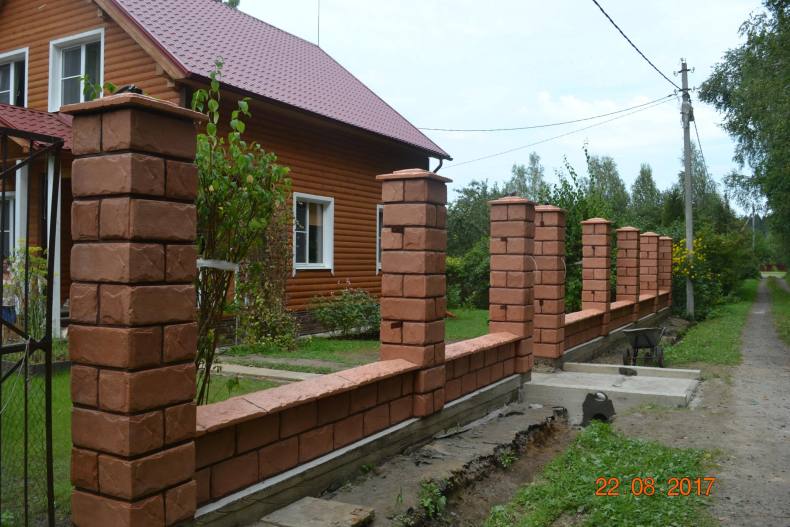 Главными недостатками использования забора с кирпичными столбцами, можно считать: