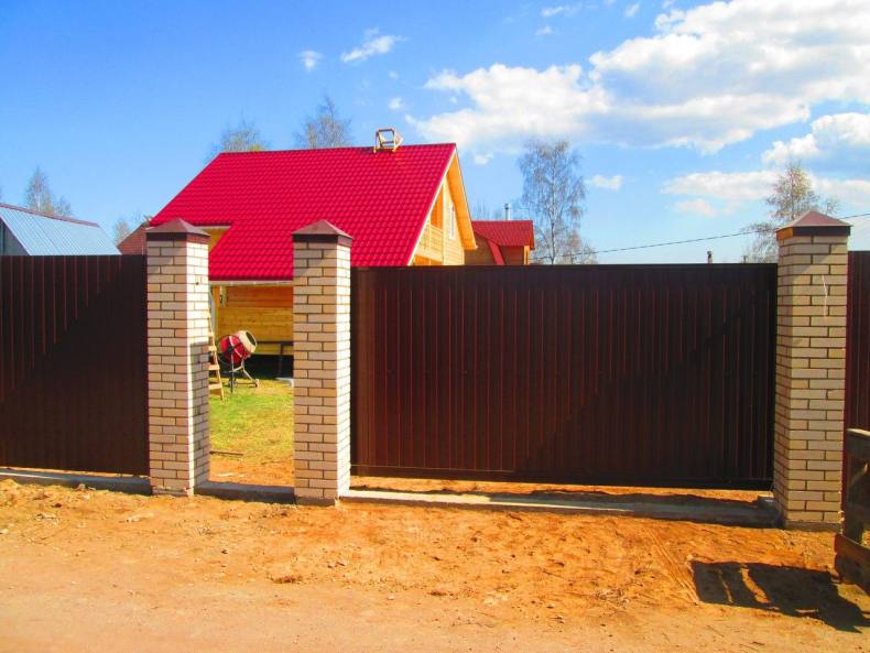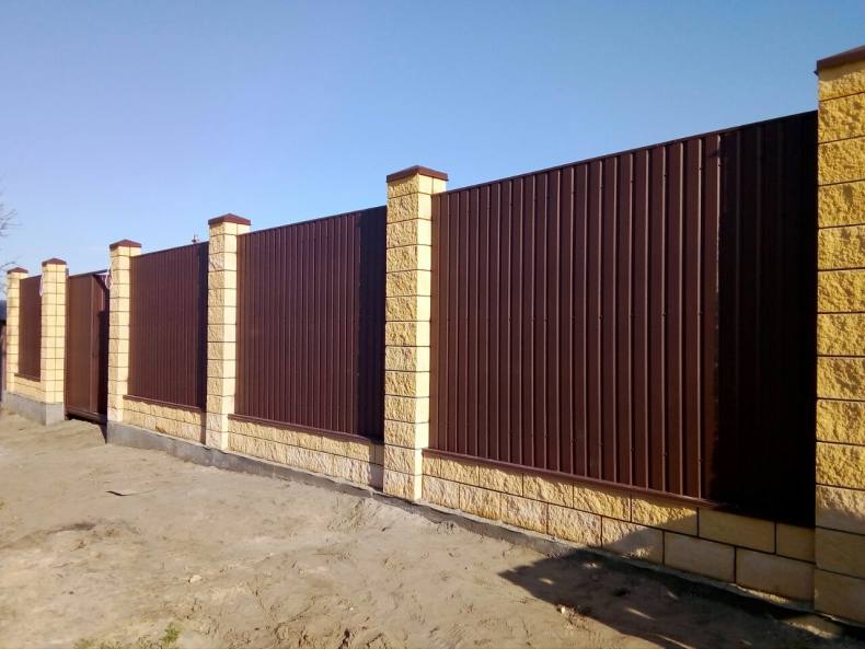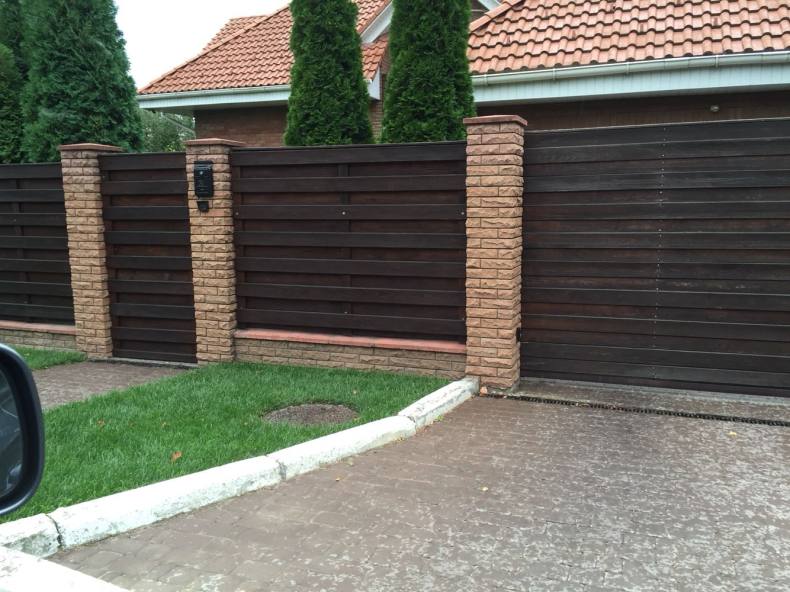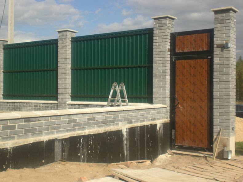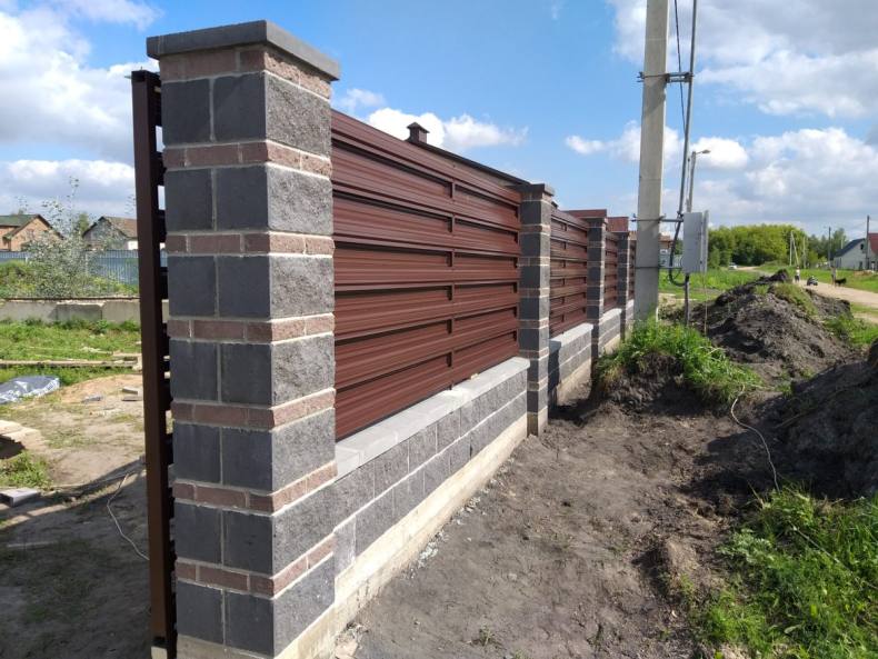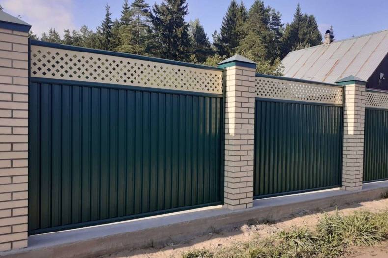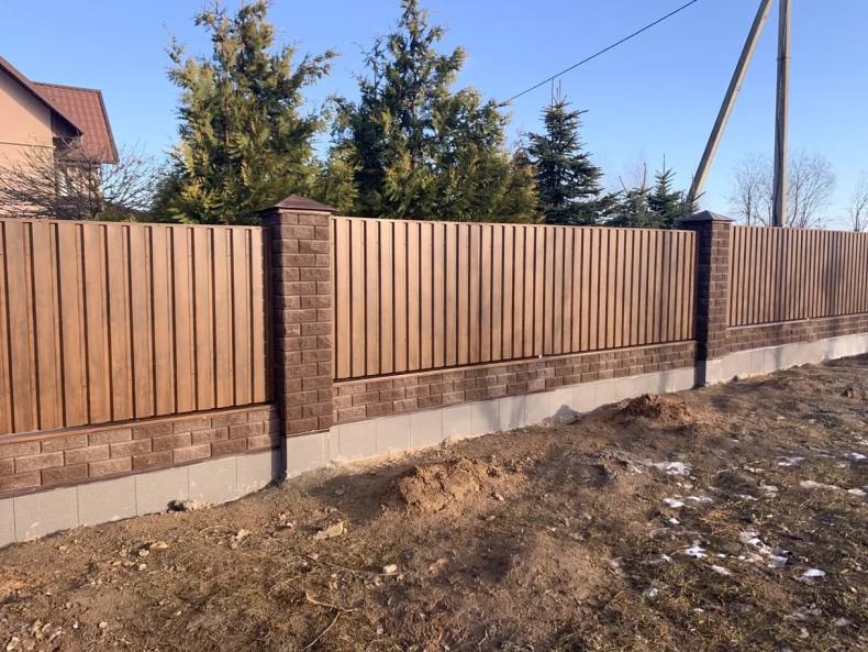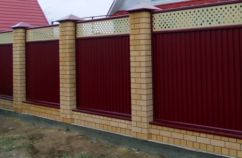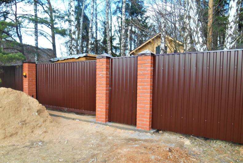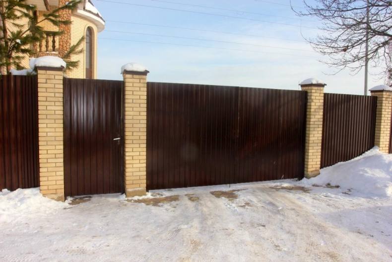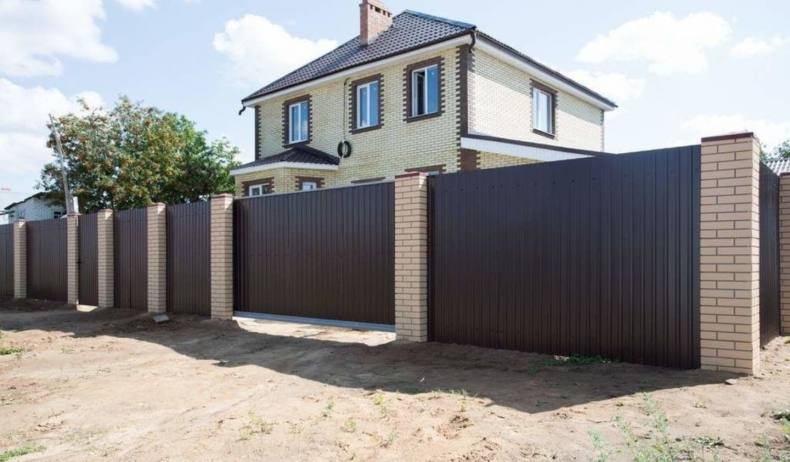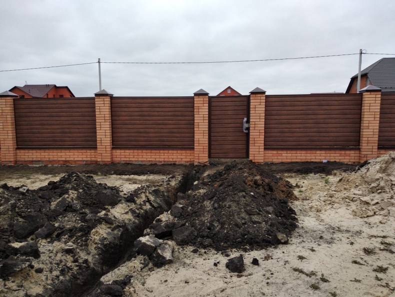 Одним из наиболее популярных вариантов в данном случае является забор с кирпичными столбцами.