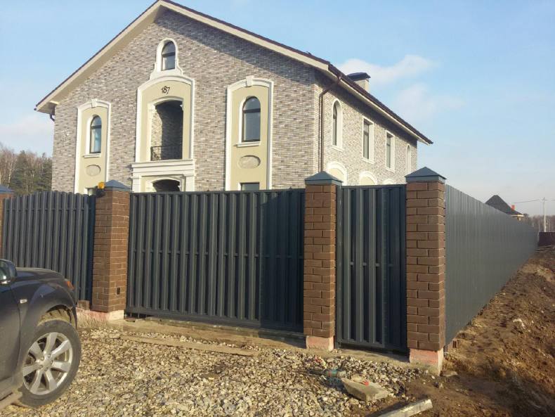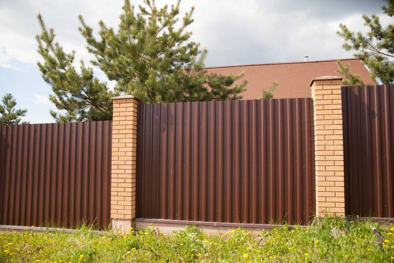 Также необходимо учитывать и сплошной характер профнастила, что помогает сформировать комплексное полотно и при этом обеспечить непроглядность около домовой территории.