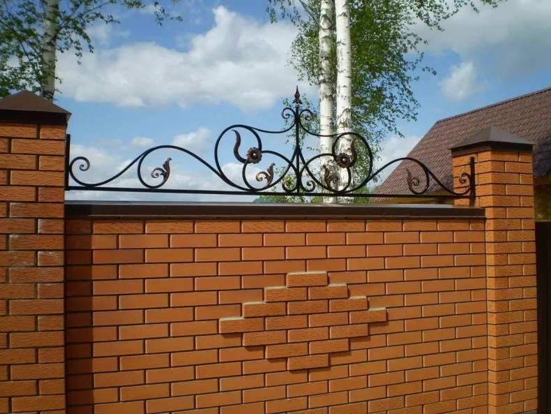 В данном случае речь идет о принципе, при котором происходит сочетание кованных металлических пролетов и кирпичных столбов. Одним из основных преимуществ является значительная эстетическая привлекательность.